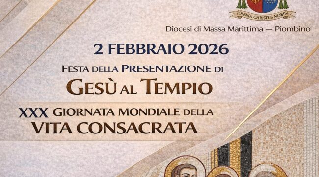 In occasione della XXX giornata mondiale della vita consacrata, lunedì 2 febbraio, il nostro vescovo Carlo presiederà la Messa a Follonica alla chiesa dei santi Pietro e Paolo: alle 17.00 i vespri, alle 17.30 la celebrazione eucaristica.