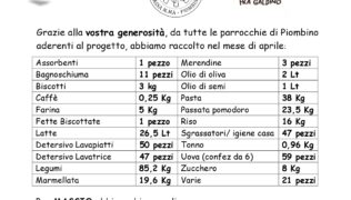 Donazioni di Maggio Come ogni mese, la Caritas diocesana ha pubblicato il resoconto relativo alle donazioni ricevute dalle comunità parrocchiali di Piombino aderenti al progetto.