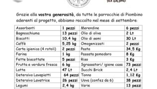 Come ogni mese, la Caritas diocesana ha pubblicato il resoconto relativo alle donazioni ricevute dalle comunità parrocchiali di Piombino aderenti al progetto. Per verificare le…