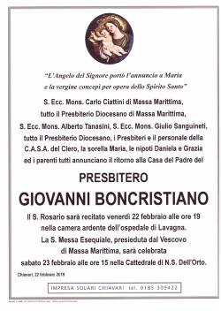Oggi, 22 febbraio 2019, è tornato alla Casa del Padre il nostro confratello don GIOVANNI BONCRISTIANO, preghiamo il Signore in suffragio della sua anima.