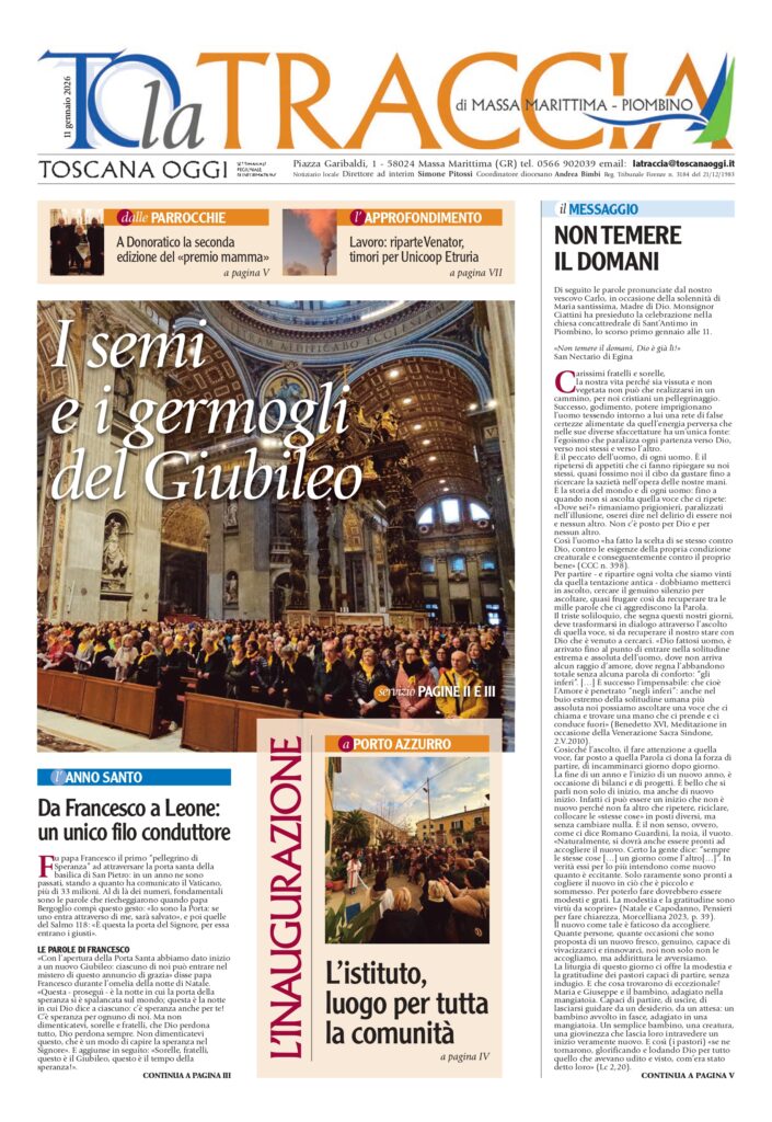 Solennità della Madre di Dio: le parole del vescovo. L’anno giubilare: un racconto di quanto successo in diocesi in questi 12 mesi. Da Francesco a Leone: il filo conduttore dell’anno santo. A Porto Azzurro (ri)prende vita il circolo parrocchiale San Vincenzo: la narrazione dell’inaugurazione. A Donoratico gli scout portano la Luce di Betlemme nei luoghi simbolo del paese e la seconda edizione del premio mamma. Ancora focus sulle crisi del lavoro e tante altre notizie all’interno.