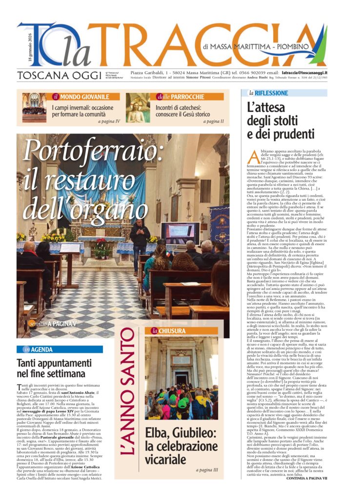 L’attesa degli stolti e dei prudenti: la riflessione del nostro vescovo Carlo. A Portoferraio il progetto di restauro dell’organo del Duomo. Giovani, i campi invernali: il racconto di tre esperienze. Fine del giubileo: la celebrazione all’isola d’Elba. L’intervento del carcere e tante altre notizie all’interno.
