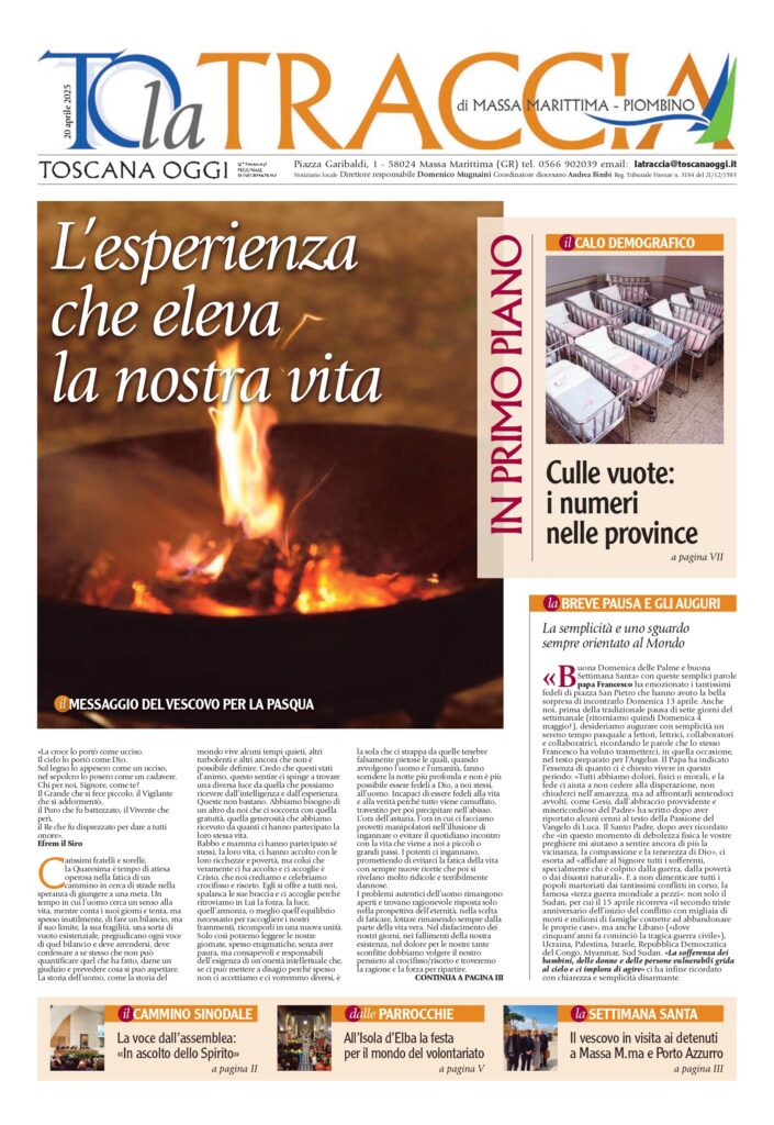 Il messaggio del nostro vescovo Carlo per la Pasqua. All’Isola d’Elba il giubileo del volontariato, l’intervista a suor Mila che ha partecipato alla seconda assemblea sinodale. Calo demografico: i numeri delle province di Livorno e Grosseto. A Donoratico la via crucis dei bambini e dei ragazzi e tante notizie di attualità all’interno.
