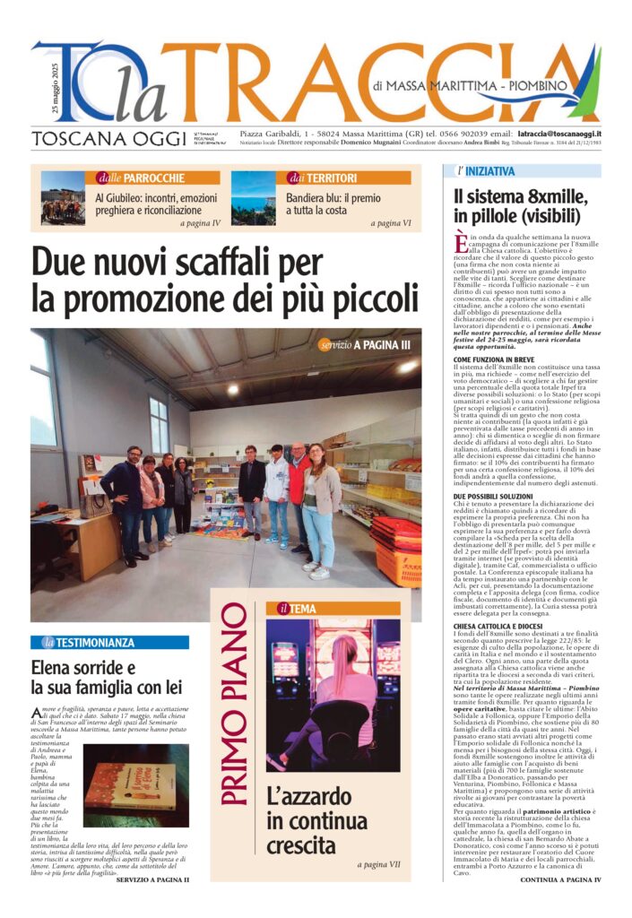 All’Emporio di Piombino la festa per l’inaugurazione di due nuovi scaffali insieme a “Nati per leggere”. A Massa Marittima la storia di Andreea e Paolo e la presentazione del libro “Il sorriso di Elena”. La parrocchia di Salivoli al Giubileo, l’Unitalsi sui luoghi di Padre Pio, a Donoratico una nuova edizione della bottega “Restiamo Umani” e a Piombino la festa per il 60esimo dalla fondazione del gruppo scout. L’approfondimento sul gioco d’azzardo e tante altre notizie di attualità all’interno.