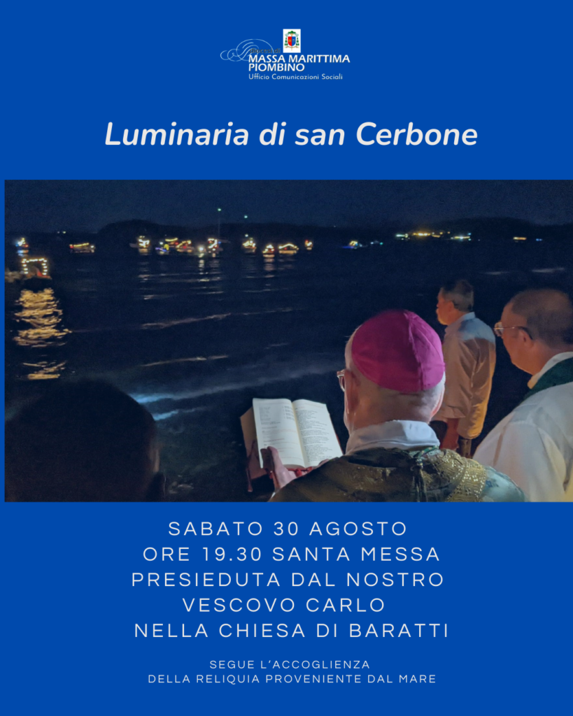 Appuntamento al golfo di Baratti alle 19.30 sabato 30 agosto. Il nostro vescovo Carlo presiederà la santa messa nella chiesa dedicata al patrono della diocesi; seguirà poi la tradizionale accoglienza della reliquia proveniente dal mare.