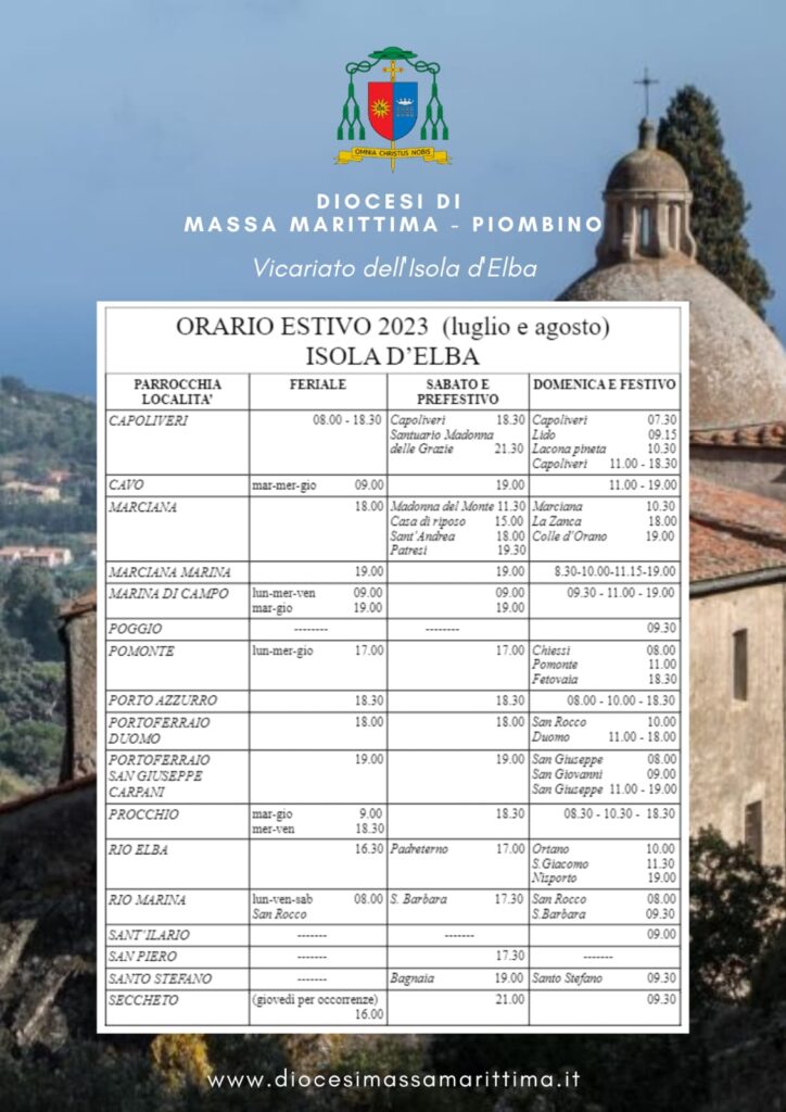 Nella locandina allegata gli orari delle celebrazioni durante il periodo estivo nel Vicariato dell’Isola d’Elba