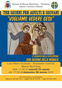 Come ogni anno, l’Azione Cattolica diocesana organizza un momento di riflessione e approfondimento del Vangelo, invita giovani e adulti a “seguire Gesù” in un mondo che ci indica strade che portano altrove, che promettono la felicità ma non danno gioia. Per informazioni ed iscrizioni, contattare i seguenti numeri: Angela 389 674 8409, Luigi 328 666 8295, Manuela 320 026 1673