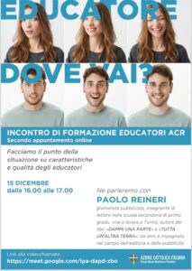 Proposta di formazione dell’Azione Cattolica per il 15 dicembre dalle 16 alle 17. L’incontro è previsto presso il centro pastorale Donegani di Massa Marittima (via Valle Aspra) oppure sarà possibile partecipare online collegandosi al seguente link: https://meet.google.com/ipa-dapd-zbo. Info e link per il collegamento nella locandina