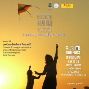 Un nuovo incontro sul tema della genitorialità promosso attraverso il progetto PEPE. Appuntamento a Follonica, chiesa dei Santi Pietro e Paolo, domenica 30 novembre alle 15.30. Relatrice della giornata la dottoressa Barbara Pandolfi, docente di teologia sistematica presso l’istituto superiore di scienze religiose della Toscana