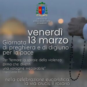 Giornata di preghiera e digiuno per la Pace venerdì 13 Marzo Descrizione: Leggi cliccando qui il comunicato integrale Data: 13/03/2026 Categorie: Giornate Città: Massa Marittima Regione: Toscana Paese: Italia 12 Marzo 202612 Marzo 2026