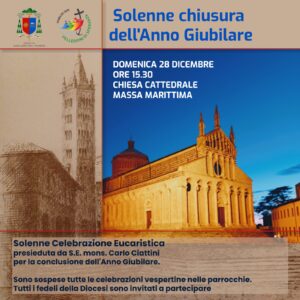 Domenica 28 dicembre, in cattedrale a Massa Marittima, alle ore 15.30, la solenne chiusura dell’Anno giubilare, con la Messa presieduta dal nostro vescovo Carlo e concelebrata da tutti i sacerdoti della diocesi. Per l’occasione, sono sospese tutte le Messe vespertine nelle parrocchie.