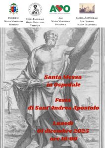 Celebrazione eucaristica all’interno dell’ospedale di Sant’Andrea a Massa Marittima, in occasione della memoria liturgica del santo, lunedì 1 dicembre alle ore 10.00