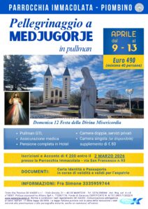 Pellegrinaggio a Medjugorje: scadenza iscrizioni lunedì 2 Marzo Descrizione: Entro il 2 marzo è possibile iscriversi al pellegrinaggio a Medjugorje con la parrocchia dell’Immacolata di Piombino. Tutte le info nella locandina allegata Data: 02/03/2026 Categorie: Parrocchie Allegati: Pellegrinaggio Medjugorje - Parrocchia Immacolata Città: Piombino Regione: Toscana Paese: Italia 23 Febbraio 202623 Febbraio 2026