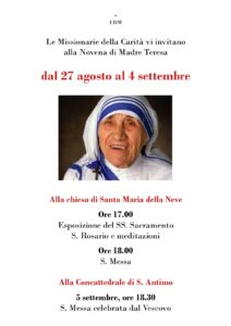 In occasione della festa di santa Madre Teresa di Calcutta il nostro vescovo Carlo presiederà la Messa nella concattedrale di Sant’Antimo a Piombino il 5 settembre alle 18.30