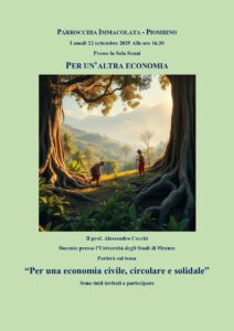 Incontro organizzato dalla parrocchia dell’Immacolata di Piombino. Appuntamento in sala Senni alle 16.30 di lunedì 22 settembre. Ospite il prof. Alessandro Cocchi, docente dell’università di Firenze, che tratterà il tema <<Per una economia civile, circolare e solidale>>.