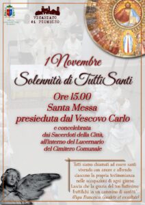 In occasione della solennità di tutti i santi, sabato primo novembre il nostro vescovo Carlo presiederà la santa Messa all’interno del lucernario del cimitero comunale di Piombino alle ore 15.00. Saranno presenti tutti i sacerdoti del vicariato della città.