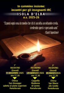 Portoferraio: Incontro IRC giovedì 29 Gennaio Descrizione: Incontri per gli insegnanti irc all’isola d’Elba. Secondo appuntamento giovedì 29 gennaio alle 17.30 alla cappella della Madonna di Loreto a Portoferraio Inizio: 29/01/2026 17:30 Fine: 29/01/2026 19:00 Categorie: Diocesi Allegati: loc irc elba 25-26 Città: Portoferraio Regione: Toscana Paese: Italia 4 Novembre 202527 Novembre 2025